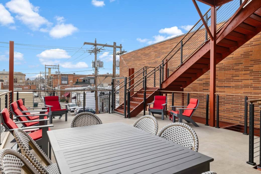 Inside a 110-year-old brick printing press, The Pressroom Atelier unfolds as a study in light, texture, and proportion. Soaring 13-foot ceilings, skylights, and exposed beams frame a loft designed for time well spent. Two king suites and a bunk room sleep 8. A private rooftop perch with Bighorn Mountain views, gas fireplace, thoughtfully appointed kitchen, and onsite parking. Designed for those who notice the details. Pets welcome.